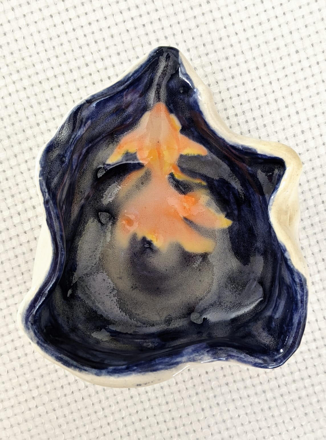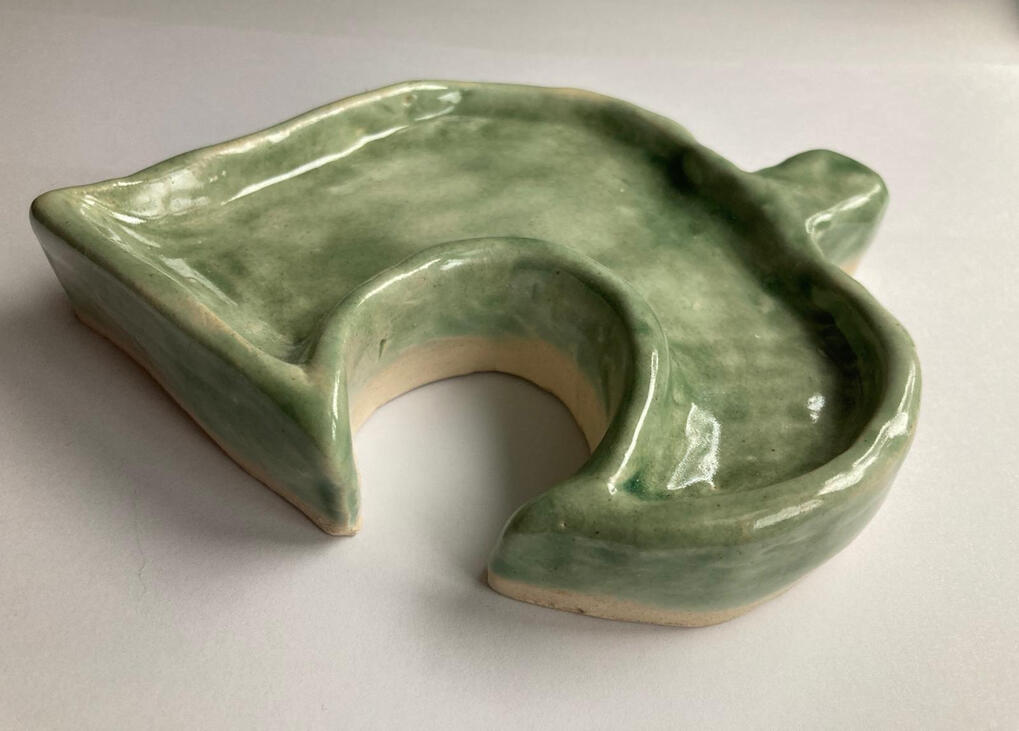 Krissa made a more contemporary take on classic pottery by making a leaf-shaped dish inspired by the modern Nintendo game “Animal Crossing”. The earth tone of the work provides a refreshing village feel to the dish, a contrast to the hustle and bustle of city life. Moreover, the soft silhouette of the work breathes an aura of tranquility to the overall presentation.